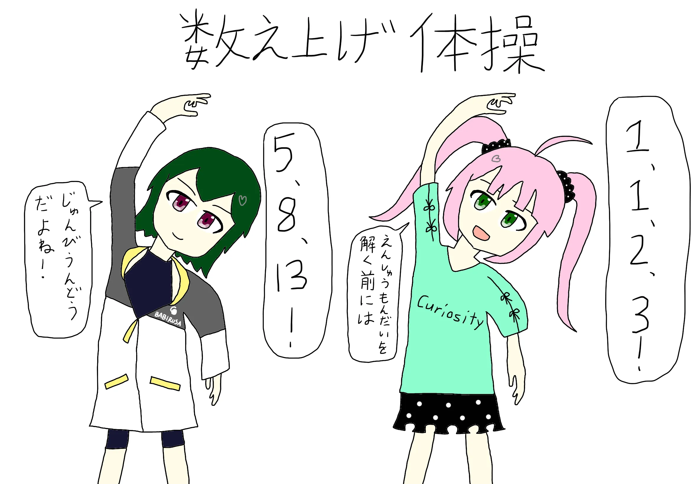 数え上げ体操をする2人です。数学をする前には準備体操が大事とのことです。